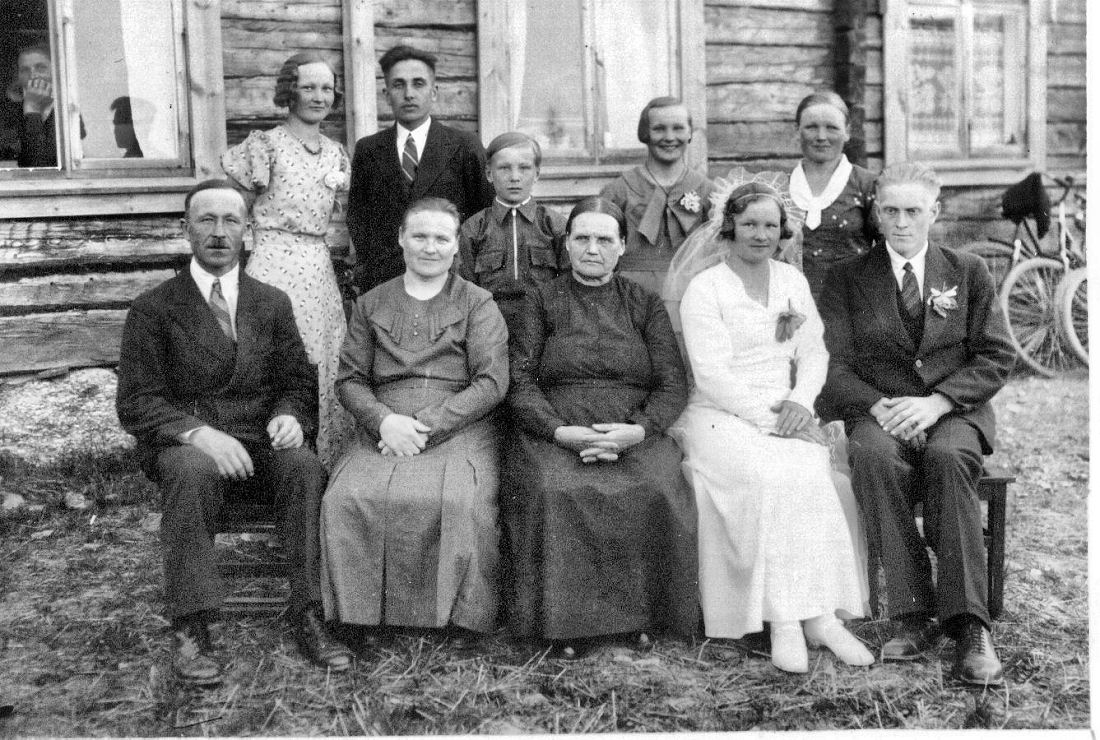 Kuva Polven (Pohjasmäen) Yrjön sisaren Irene-siskon häistä. Sulhanen Eino Hautamäki.