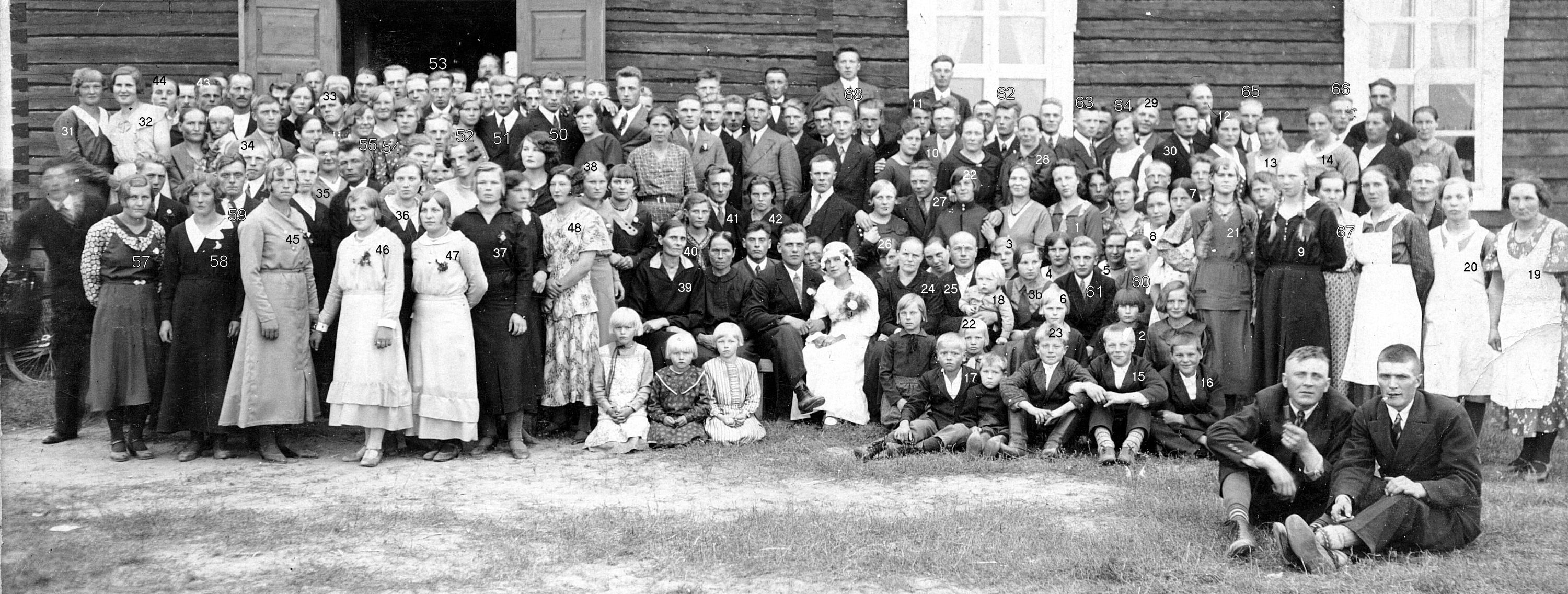 Toivon Kivistön ja Irene Ahon häät Lakaluomalla 8.9.1933, (alkupään (1 - 30) numerot morsion oikealla puolen)