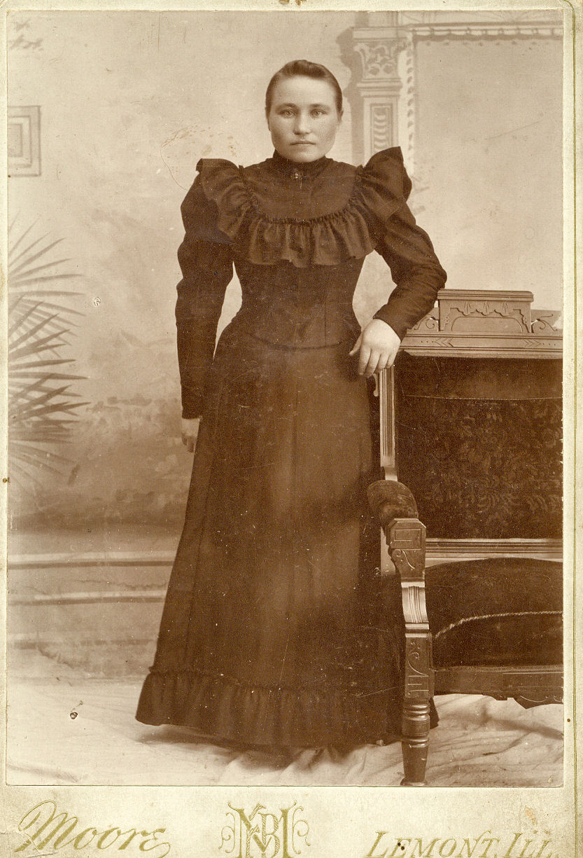 Kaisa Ollikainen (os. Aho) nuorena Amerikassa (2.7.1866 - 14.1.1956). Kaisa oli Välimäen Liisan isän eli harmoonimestari Juha Ahon sisar. Kaisa muutti Amerikasta tultuaan Kotajärvelle ja otti Aleksin tyttären Saiman (m. Kotajärvi) kasvattitytökseen