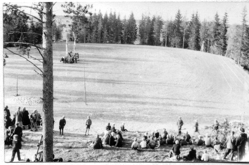 Hirvijoen Ylikylän koulun urheilukentän vihkiäisistä, paikalla oli oikein puhallinsekstetti (vai tertsetti?).