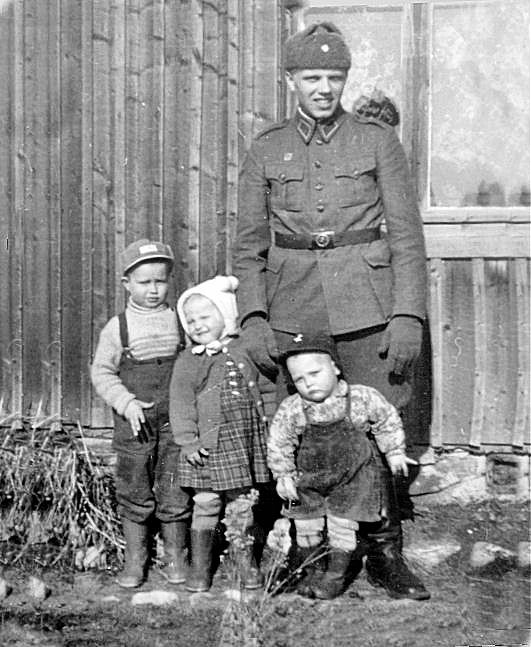 Isäni veljen Eeli Kotalan kanssa poseeraamassa vas. Arto, Armi ja Alpo Kotala (sivujen tekijä)