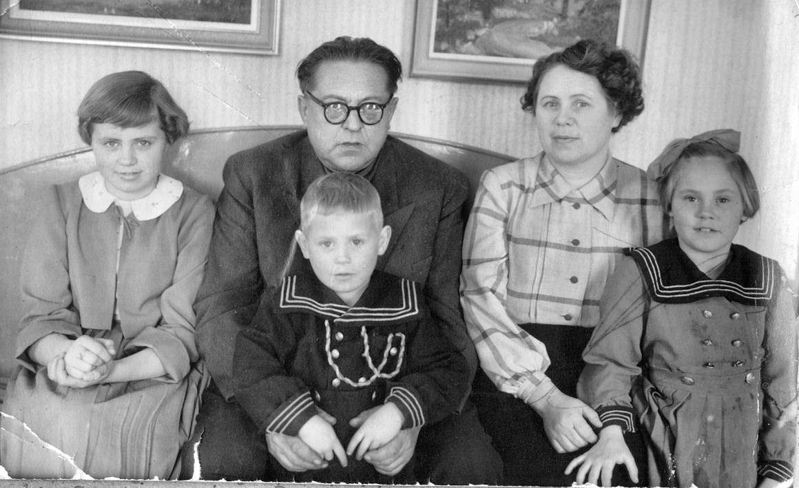Leo Leinosen perhe. Leo oli opettajana Hirvijoen kansakoulussa v. 1945 - 1951