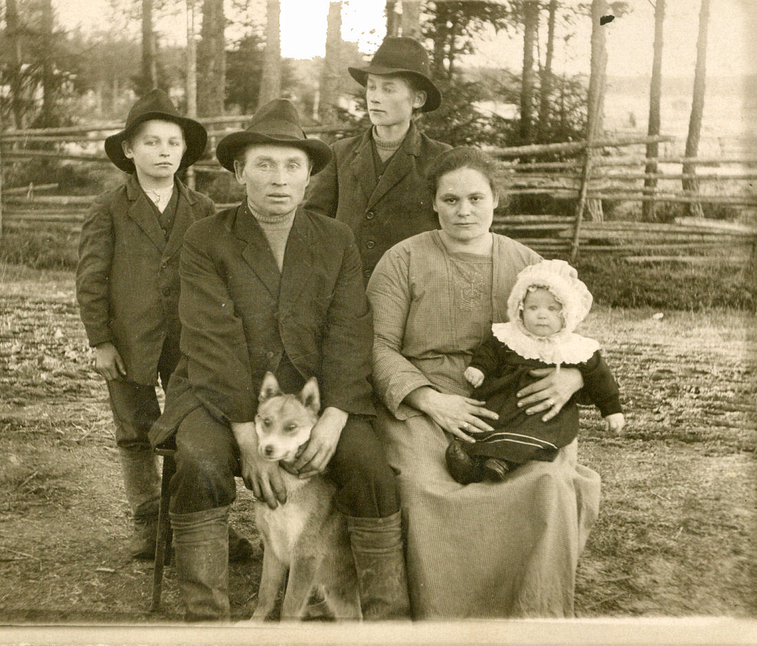 Juha ja Aliina Ylirantalan perhe (vmo. os Hautamäki, Hautamäen Reinon isän Aukustin sisar). Perhe muutti Amerikkaan (Kanadaan?), josta Juha lähti tyttärensä kanssa -30 luvulla Neuvostoliittoon, palasi sieltä kävellen Suomeen ja takaisin 'Valtoihin'.. Juha oli Ylirantalan Fiinan (m. Välimäki) ja Miinan (m. Murtomäki) veli. Ylirantalan sisarukset esitelty tarkemmin ryhmäkuvassa 21