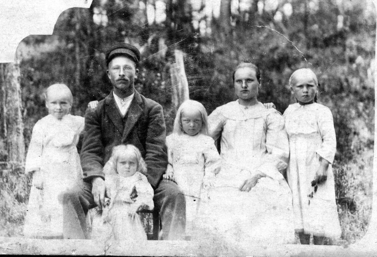 Matti ja Kaisa Pohjasmäki tyttärineen, lapset vas. Lissu, Annu, Eini, Maija.