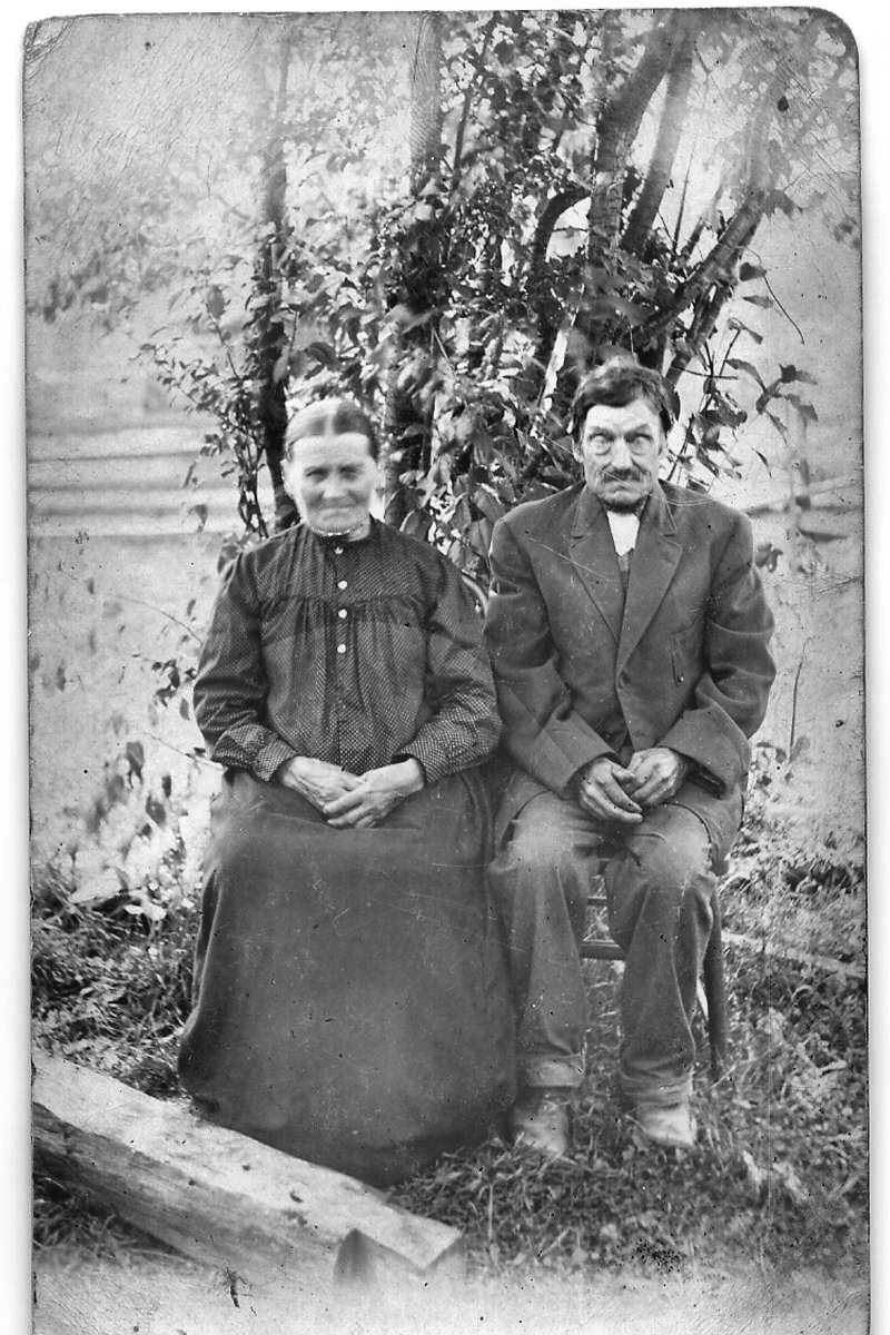Matti (ent. Pristisä, 8.4.1840 - 1.1.1940, jul. kuoll.) ja Liisa Rasvalammi (29.1.1842 - 1.1.1940). Liisa on isoisäni Jussin äidinäidin sisar. Pariskunta raivasi Rasvalammen rannalle torpan, mutta totesi paikan kiviseksi ja huonoksi. Muuttivat Amerikkaan 1900 -luvun alussa. Kuvan sain jälkeläisiltä Alaskasta! Heiltä sain sukutiedon, joka kertoo Matin ja Liisan peltojen olleen Minnesotassa aivan yhtä huonoja kuin Rasvalammella. Kuva otettu 1910 -luvun puolessavälissä. Jälkeläiset ovat pitäneet yhteyttä Suomen sukulaisiin.