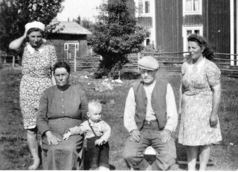 Ojalan Juhan ja Sannan (os. Perälä) perhe. Vas. Oili, oik. Toini, keskellä (tod. näk.) Liisan poika Antti Mäenpää