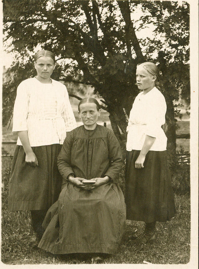 Maria Välimäki (-54. os. Korpela) lapsineen. Vas. Kaisa (m. Välimäki, opett. Jussin vmo), Impi (m. Murtomäki, Esan vmo). Marian mies Juho oli isuni Kaisan isän Matin vanhimman veljen Jaakon poika.