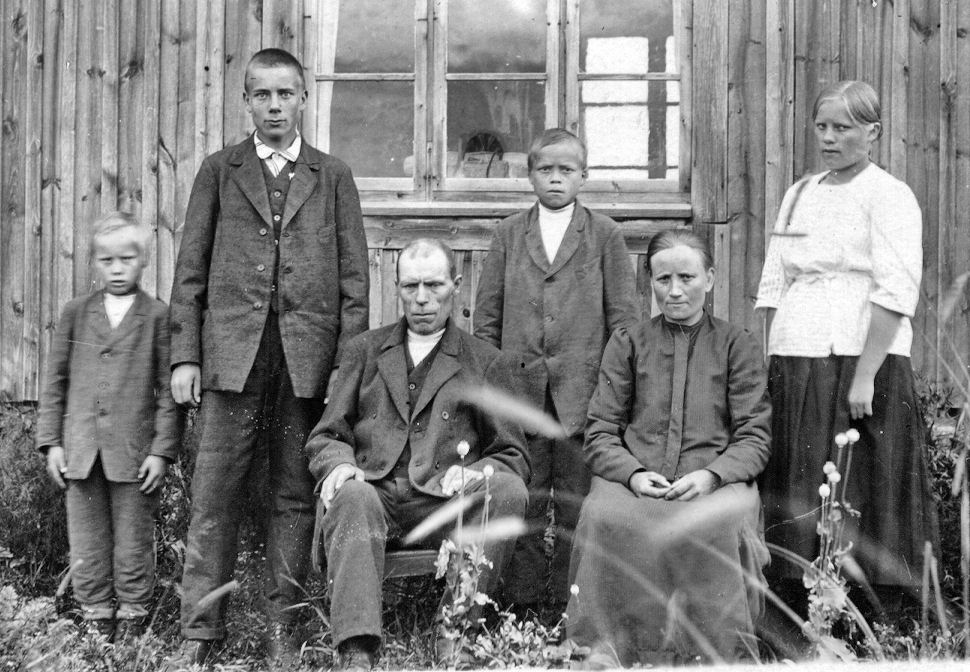Iisakki (kot. Haapakoskelta) ja Iita (os. Korpela) Yli-Kojolan perhe. Kuva otettu 1921.