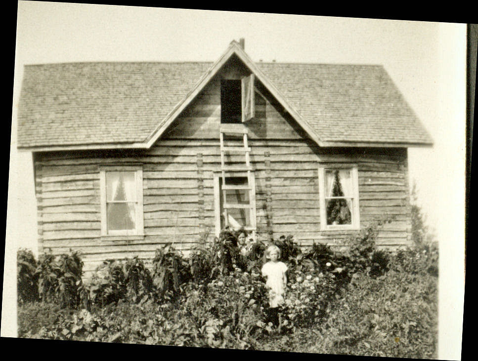 Rakennuksesta ei tietoa. Pitsiverhot ja ikkunat viittaisivat kyllä Amerikkaan. Kuva on tallennettu Murtomäellä, jotain yhteyttä Hirvijoelle siis on. Saattaisi olla Juha Ylirannan (Välimäen Kustaan vaimon ja Murtomäen Esan vaimon veljen) talo)